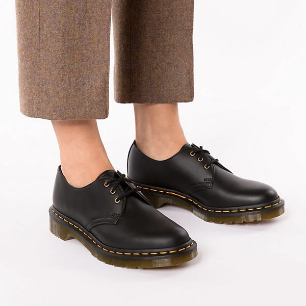 Ideal, wenn es Zeit für neue Lieblingsschuhe ist: Die ansprechend gestalteten Schnürschuhe von der Marke Dr. Martens. Durch den Schnürverschluss lässt sich der Schuh individuell an den Fuß anpassen. Die Oberfläche dieses Paares besteht aus strapazierfähigem Synthetik und ergibt ein stimmiges Gesamtbild.